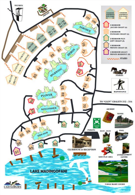 - A refundable key / breakage deposit is payable upon arrival at the resort, the amount can be confirmed by contacting the resort directly. Please note that should this fee not be paid, occupancy will not be granted. Please note that the Key and Breakage Fee is payable upon arrival to the Resort directly. This fee is not payable to the Reservation Company, as it is a Resort function. Please note that no pets are permitted. This includes all pets. The Resort charges a non-refundable amenities levy payable on arrival. This levy is paid per chalet, for the use of most of the amenities. Grounds maintenance will be in progress during the dry season. Please note there are stairs from the parking area to the units. The upstairs apartments are not suitable for toddlers, the walking impaired, or the elderly. The resort is not wheelchair friendly at all. Only a person aged at least 21 years may sign into the accommodation and must remain in occupation for the duration of the stay. Group Bookings Notice: Please note that should you confirm 2 or more chalets at the same resort, for the same period, that this will be regarded as a Group Booking. Over and above the Standard Terms and Conditions and Resort Rules and Regulations, the below will also apply to all Group Bookings: 1. Before confirming and paying for your Group Booking (2 or more chalets at the same resort, for the same period), it is your responsibility to first contact the relevant Reservations Company to obtain approval from the relevant resort for the Group Booking. Should the resort decline the request for the Group Booking, the reservation will be canceled with immediate effect. Should the resort grant approval for the Group Booking, the relevant Reservations Group will assist with the payment and confirmation of the reservations, and all additional Group Booking Terms and Conditions will be explained. 2. Group Booking gatherings are not permitted in one chalet. No more than the prescribed number of guests per chalet will be permitted in the chalet. 3. Communal / Boma areas / facilities are available at most resorts. Please contact the resort directly after confirming the booking with the relevant Reservations Company, to book the areas for Group Bookings. Please do note that this will be at an additional cost and managed by the relevant resort. 4. No parties / loud music / disruptive / abusive behavior will be tolerated. Non-compliance will lead to immediate eviction at Managements and / or Security’s sole discretion. This decision is final, and the Group will be requested to leave the resort immediately. Should the Group be evicted from the resort, or occupation not permitted, neither the Reservations Company, the Resort, nor the Managing Agent will be liable for any form of compensation / refund. 5. Additional Group Booking forms must be signed by the main member upon arrival at the resort. Should the main member fail to sign the said indemnities, access will be denied, with no compensation / refund given. 6. The Key and Breakage deposit is payable per chalet confirmed, and not per Group.