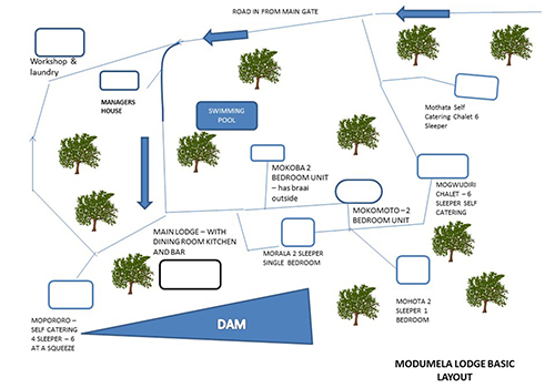 - A refundable key / breakage deposit is payable upon arrival at the resort. The deposit amount is R 1500.00 for Rental Clients, and R 350.00 for affiliated Club Members. Please note that should this fee not be paid, occupancy will not be granted. Please note that the Key and Breakage Fee is payable upon arrival to the Resort directly. This fee is not payable to the Reservation Company, as it is a Resort function. Refund of the Deposit takes up to 7 - 14 workings days. Please note that no pets are permitted. This includes all pets. The following documents will be required when traveling to Botswana with minors (18 years and below): 1. Valid Passport. 2. Valid VISA, if required. 3. Unabridged Birth Certificate (Birth Certificate containing the particulars of a minor and those of the parents). 4. A letter of consent from the other parent should the minor be travelling with one parent. Under the new law, all minors under the age of 18 years will be required to produce, in addition to their passport, an Unabridged Birth Certificate (showing the particulars of both parents) when exiting and entering South African ports of entry. In cases where the Unabridged Birth Certificate is in a language other than English, it must be accompanied by a sworn translation issued by a competent authority in the country concerned. The lodge currently has three - two bed-roomed self catering units; The chalets are furnished and each has their own en suite bathrooms, hot water showers/bath and flushing toilets. They have a carport adjacent to each chalet and their own braai area and a bonfire pit. They are designed so that guests can enjoy an African Bush experience. The fourth eight sleeper unit is nearing completion. N.B. There is no restaurant or bar at Modumela Lodge. The main complex, a magnificent thatched area overlooks a picturesque dam and is built on top of a kopje, surrounded by modumela trees (white syringa). The complex offers a reception area, manager’s office, lounge with TV and a sundeck which overlooks one of our two dams. Modumela Lodge is in a low risk malaria area. Guests are encouraged to bring insect repellent, simply to ensure their own comfort. FACILITIES IN THE CHALET: We now have electricity from Botswana Power Corporation and a standby generator. Hot water is supplied from an electric geyser. Modumela Lodge has mosquito nets in the rooms. Tea and coffee facilities are provided in your chalet on the day of your arrival. Hand and Bath towels are provided. (Please bring your own swimming towels) Each chalet is fitted with an overhead fan in the lounge and air conditioners in bedrooms. FACILITIES AT MODUMELA LODGE: There is a swimming pool and a volley ball court which guests may use at their leisure. The balls for the volley ball are available from reception. There are also some board games available on request at reception. The water is from a borehole. It is recommended that you only use the water provided in your jug for drinking. All this water is pre-boiled as a precautionary measure. There are credit card facilities at the resort but the system runs on intermittent cellphone signal. Cellphone signal is strongest on the sun deck, but there is no WiFi at the lodge available. KINDLY NOTE: *Check in time is 13:00 to 18.00 hours when our main gate is locked for the night. To assist with housekeeping, guests are requested to vacate their chalets by 10:00 a.m. at the latest on the date of check out. Your co-operation in this respect is appreciated. *You also need to pay third party insurance in Pula at the border post for your vehicle. *If you are not the owner of the vehicle you will also require a certified letter from the owner giving you permission to drive the vehicle in this county. *You need international roaming on your phone or you need to buy a local SIM card as soon as you cross the border. This is needed because Modumela Resort Management have kindly requested that guests travelling by road should call and inform the resort of their impending arrival, when they cross the border into Botswana as cell phone signal is somewhat erratic along the road. This way the resort will know to meet you at the resort’s gates as the gates are kept closed during the day and locked from 18.00 to 06.00 hours daily, for protection of the game on the farm. *Guests are strongly advised to ensure they have adequate medical, personal accident and personal belongings insurance cover. Group Bookings Notice: Please note that should you confirm 2 or more chalets at the same resort, for the same period, that this will be regarded as a Group Booking. Over and above the Standard Terms and Conditions and Resort Rules and Regulations, the below will also apply to all Group Bookings: 1. Before confirming and paying for your Group Booking (2 or more chalets at the same resort, for the same period), it is your responsibility to first contact the relevant Reservations Company to obtain approval from the relevant resort for the Group Booking. Should the resort decline the request for the Group Booking, the reservation will be canceled with immediate effect. Should the resort grant approval for the Group Booking, the relevant Reservations Group will assist with the payment and confirmation of the reservations, and all additional Group Booking Terms and Conditions will be explained. 2. Group Booking gatherings are not permitted in one chalet. No more than the prescribed number of guests per chalet will be permitted in the chalet. 3. Communal / Boma areas / facilities are available at most resorts. Please contact the resort directly after confirming the booking with the relevant Reservations Company, to book the areas for Group Bookings. Please do note that this will be at an additional cost and managed by the relevant resort. 4. No parties / loud music / disruptive / abusive behavior will be tolerated. Non-compliance will lead to immediate eviction at Managements and / or Security’s sole discretion. This decis